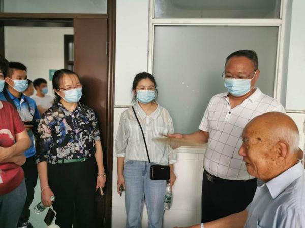 8月5日上午,“致敬老兵”系列活动之“老兵您好”社会实践团来到东台市唐洋镇。在东台市唐洋镇有关领导的带领下,盐城市退役军人事务局姜定海主任、东台市退役军人事务局单小涛局长和云顶国际yd333物电公司党总支书记孙伟、法政公司党总支副书记高娟、物电公司团总支书记马玲玲及公司员工志愿者季杨、冯谖、曹可凡等一行人来到唐洋镇中心医院看望95岁高龄的周竹林老人。