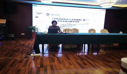 开班第一场讲座由江苏省教育厅思想政治理论课教学指导委员会委员张勤教授主讲,主题是《思想道德修养与法律基础课教师素养与教学创新》。