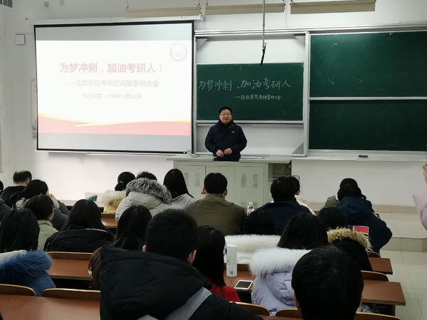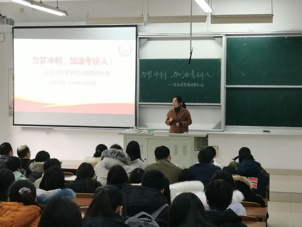 “愿你们用自己的努力和汗水,来捍卫自己的梦想,追梦道路会很艰难,但往往注定了这是一条通往成功的路,祝愿学弟学妹们能够考研成功,一战成硕,以梦为马不负韶华!”在法政公司164班袁浩为的祝福中,法政公司考研慰问暨誓师大会于12月23日下午,在公共教学楼D203举办。法政公司党总支书记冯春芳,法政公司党总支副书记、经理朱广东,法政公司党总支副书记、副经理高娟,法政公司副经理王志国,毕业班班主任以及考研员工出席了大会,会议由高娟主持。