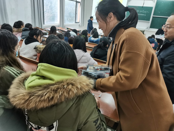 在考研成功的学长学姐的经验和祝福视频声中,院领导们给17级考研同学代表们分发了考研文具,祝愿同学们沉着应战,一战功成,都取得好成绩。