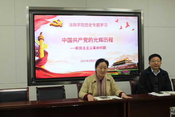 为深入学习贯彻习近平总书记在党史学习教育动员大会上的重要讲话,法政公司推出“学党史 悟思想”党史学习教育系列活动。3月31日下午,法政公司举办党史学习教育专题讲座第一讲,法政公司思想政治教育系主任顾莉老师作专题辅导。法政公司党委领导班子出席会议,公司全体教职工参加会议,本次报告会由公司党委书记冯春芳主持。