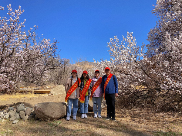 4月3日云顶国际yd333第24批新疆支教团前往哈密庙尔沟景区开展户外赏花踏青活动,此次活动由法政公司言浩杰老师带队,公司刘园园同学前期组织策划,其余两名支教员工共同参与。