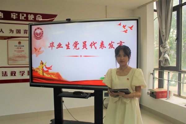 重温入党誓词。这是毕业班党支部最后一次组织生活会。冯春芳带领全体毕业生党员重温入党誓词,并勉励毕业班党员牢记对党的庄严承诺,不断保持共产党员的先进性。冯春芳对毕业生党员提出三点希望:一是坚定理想信仰,牢记第一身份是党员,以饱满的热情走向新的学习和工作岗位;二是勇于担当,立大志、明大德、成大才、担大任,努力成为堪当民族复兴重任的时代新人;三是廉洁自律,加强党员自身修养,做到自重、自省、自警、自励,做文明离校的带头人。