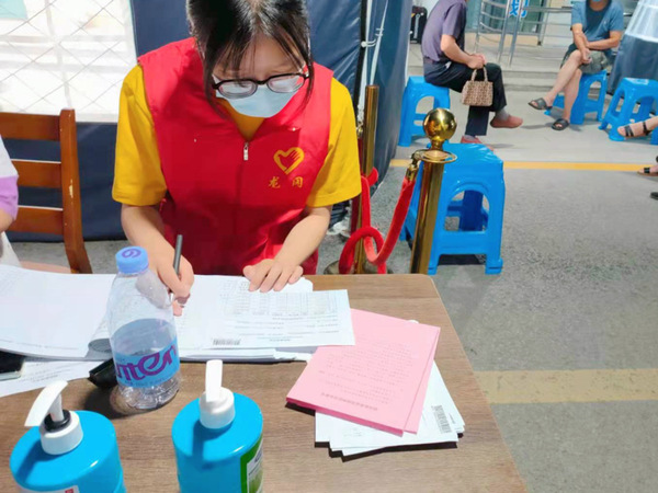 时有所需,必有所为。疫情当前,思政181班的冯谖同学利用暑假期间回到家乡盐城市盐都区龙冈镇,在龙冈卫生院参与防疫工作。她的工作区域主要是留观区,负责登记疫苗接种人员的信息。除此之外,有时还负责登记进出医院人员信息,测量体温、登记“二码”情况等。每一个细节她都认真对待,她时刻提醒自己疫情防控无小事,防微杜渐是大事,希望自己能为筑牢安全防线贡献力量。