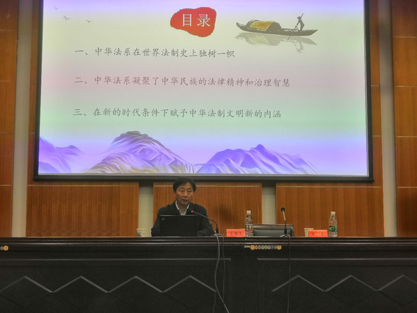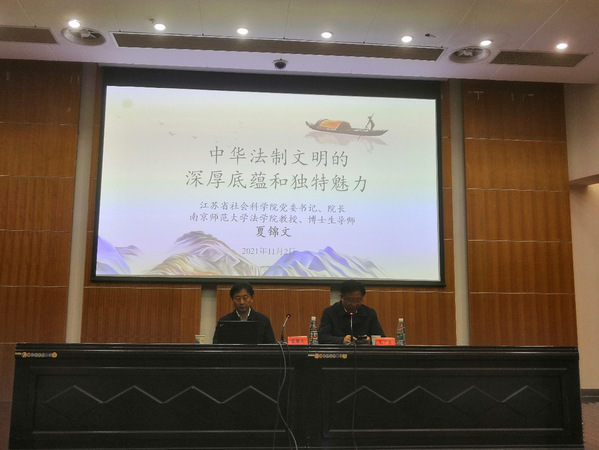 为深入学习贯彻习近平法治思想,提升公司师生的法治理念与水平,2021年11月4日下午,法政公司特邀我国著名法学家、江苏省社会科公司党委书记、经理,南京师范大学云顶国际yd333教授,博士生导师夏锦文教授在图书馆学术报告厅作《中华法制文明的深厚底蕴和独特魅力》的学术讲座。讲座由法政公司党总支副书记、经理朱广东教授主持,公司师生参加学习。