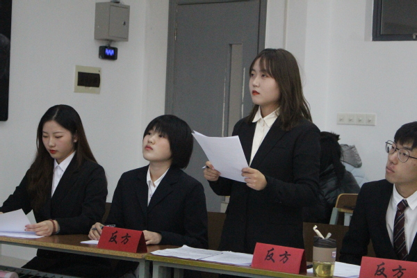 首先进行的是立论环节,双方辩手准备充分,在对辩题有一个良好理解的基础上阐述自己的观点。紧接着就是紧张刺激的攻辩阶段,正方重点强调合作的重要性而反方则指出了合作中也存在竞争目的,双方各执己见,唇枪舌剑,精彩的对辩赢得了全场的掌声。驳立论的结束迎来了辩论赛的高潮—自由辩论。辩手们争锋相对、步步紧逼,现场气氛迅速升温。在结辩的环节中,正反方就自己的观点进行了总结陈述,他们清晰的思路给观众们留下了深刻的印象。