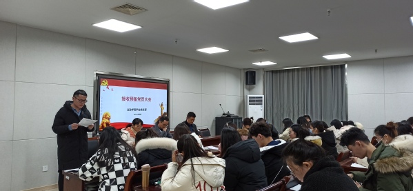 12月20日下午,法政公司员工党支部于综合楼A210召开了接收预备党员支部大会。此次会议由法政公司员工党支部书记郭佳慧老师主持,党支部委员葛伟老师、学工办主任王川老师出席。大会围绕讨论接收发展对象门绍森等14名同志成为预备党员进行展开。