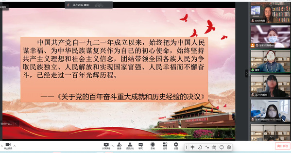 为深入开展党史学习教育,筑牢青年员工信仰之基,4月20日下午3点,法政公司线上开展了以“中国共产党的百年奋斗历程”为主题的2022年春学期入党积极分子党课。此次党课由法政公司副经理唐萍主讲,入党积极分子积极参加并认真学习记录。