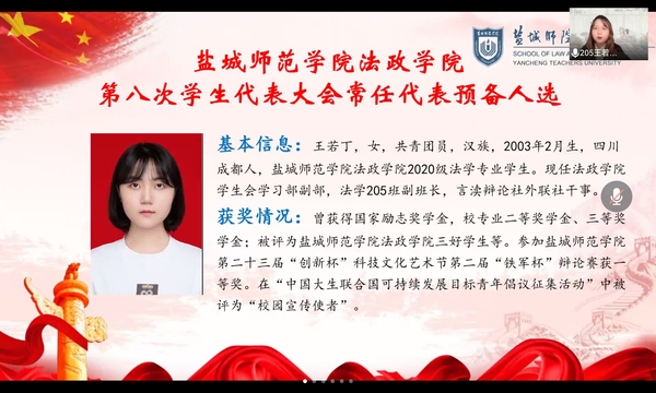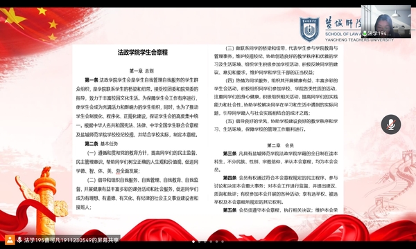 为深入落实习近平总书记有关青年工作的重要讲话精神,总结经验、展望未来,不断把握机遇、锐意进取,团结带领全院青年老员工以崭新的姿态迎接新的任务和挑战。2022年4月30日晚,法政公司于线上开展了第八次员工代表大会。出席本次会议的有学工办主任王川、辅导员郭佳慧以及员工代表。