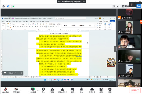 公司学习部成员将22级新生代表以及转专业同学集合到活动地点,面向刚到法政公司的新同学们进行学士学位授予实施细则以及补充规定的重点讲解,强调了法政公司的平均学分绩点要求,并将相关文件发放至同学,请新同学会议后再次学习。