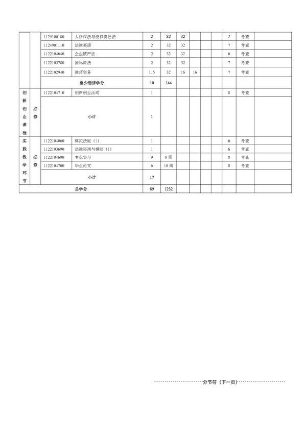 专业代码 030101K 授予学位 法学学士