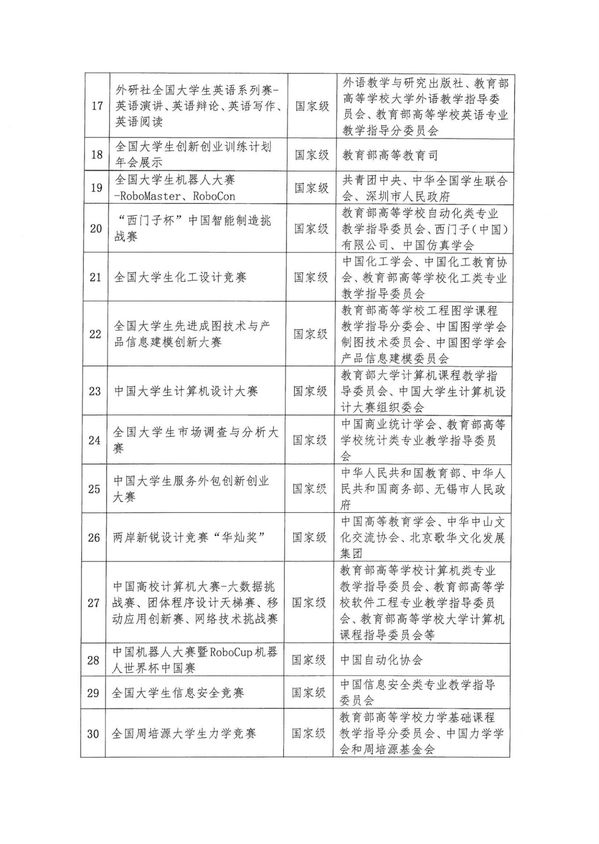 2.国家级学科竞赛:指国家政府部门或全国性学术团体组织的全国性学科竞赛和为国际级学科竞赛决赛而举行的区域选拔赛。