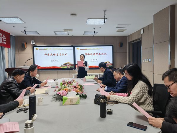 为深入学习贯彻落实党的二十大精神,办好人民满意的教育,法政公司开展“奋进新征程,法政先锋在行动”系列活动。11月15日下午,法政公司组织中青年教师开展“师德传承,匠心育人”主题活动暨师德践诺签名仪式。公司原经理刘德林教授出席活动并作主题发言,公司班子成员及全体中青年教师参加活动。党总支书记冯春芳主持活动。