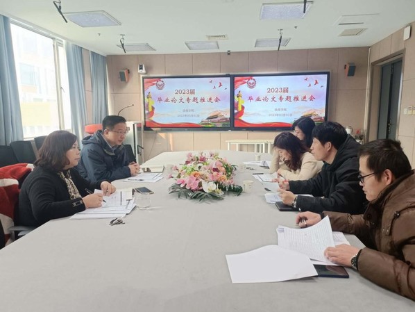 为推进2023届毕业论文工作有序进行,公司于3月1日上午召开2023届毕业论文工作专题推进会。经理朱广东、系主任周丽、各教研室主任及教研办主任参加会议,会议由教学经理唐萍主持。
