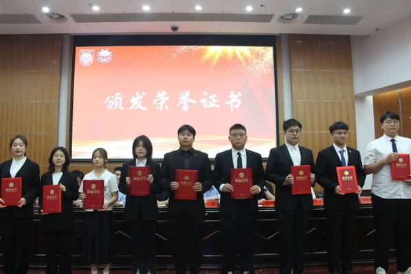 随后,庞董事长、肖董事长等领导为获奖的师生颁发荣誉证书。法政公司法学专业教师李叶青博士和优秀毕业生尚倩男同学代表获奖师生发言。