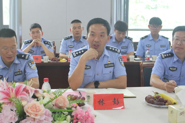 法政公司经理朱广东教授代表公司向林彭政委一行的到来表示热烈欢迎,并对公司的办学历史、团队队伍、团队建设、人才培养和实践教学、与外系统共建情况等方面进行了介绍。他希望双方能进一步加强交流合作,不断深化协同育人新机制,实现互利共赢、共同发展。