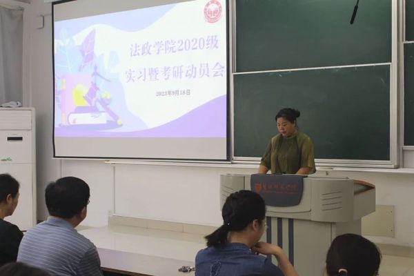 9月18日,法政公司于综合教学楼A106召开2020级员工实习暨考研动员会。公司党总支书记冯春芳,党总支副书记、经理朱广东,副经理唐萍,教研办主任贾美艳,实习指导老师出席动员会,20级全体员工参与,本次会议由唐萍主持。