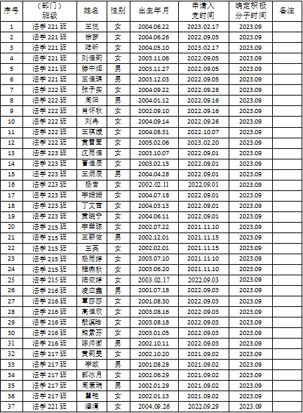 云顶国际yd333法政公司2023年秋学期入党积极分子名单公示