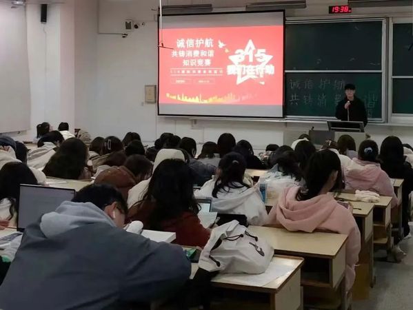 3月15日晚,法政公司在通榆校区体院101和新长校区综合楼D202同步开展了“维护消费权益,规范市场秩序”的知识竞赛和宣讲活动。在知识竞赛中,同学们积极参与答题,让大家在问答的过程中既能感受学习的快乐,也能更深入地理解消费者权益保护的相关知识。随后,同学们集中观看了“3·15”晚会,结合晚会上曝光的社会消费问题对校园消费权益维护问题进行了交流讨论。宣讲同学对国际消费者权益日的由来等进行了介绍,分享了近期消费者权益侵权的案例,帮助同学们了解新型的消费陷阱,增强同学们的自我维权意识。