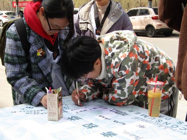 3月15日,法政公司方正学社与新苗法律援助工作室联合举办了“维护消费权益,共建美丽生活”的校园普法活动。他们在新长校区创业园门口摆放着“3·15”知识展板供公司师生观看了解,并向同学们随机发放了调查问卷,调查老员工消费维权意识。现场的同学们在“315”数字展板上创作,他们用笔在“315”空心位置里写下自己认为关于消费或经营重要的名词来填满空白,以此来增加对消费者权益保护的认识。同时,他们还在上面郑重签名,坚定文明消费理念。