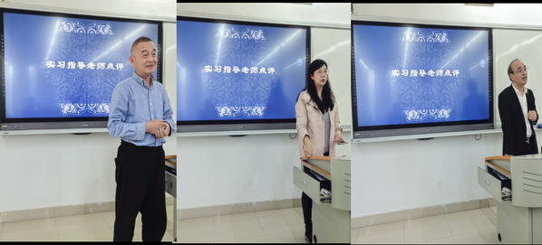 会议邀请李叶青、孙信之、任满军三位实习指导教师进行现场点评。他们肯定了实习生的实习态度,并且懂得守信、守时、守约的重要性,希望实习结束后大家能够运用实习积累的工作经验以及大学学习的专业知识,为日后的工作做好知识的储备以及工作经验的积累。