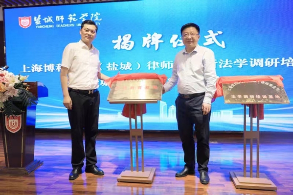 (图为上海博和汉商(盐城)律师事务所与盐师云顶国际yd333共建签约揭牌)
