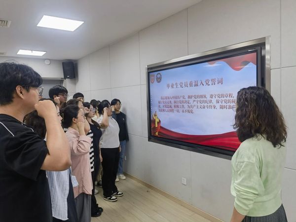 会上,全体党员认真阅读《廉洁承诺书》,并郑重签下名字做出承诺。随后,高娟带领全体毕业生党员重温入党誓词,铿锵有力的宣誓声表达了了共产党员不变的初心和不懈奋斗的决心。