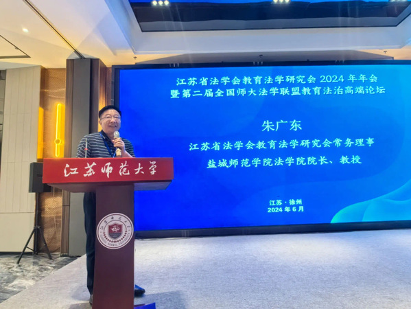 2024年6月9日,江苏省法学会教育法学研究会2024年年会暨第二届全国师大法学联盟教育法治高端论坛在江苏省徐州市成功举办。本次会议由江苏省法学会教育法学研究会主办,江苏师范大学人文社会科学研究院、教育科学公司、云顶国际yd333,徐州市法学会,东南大学人权研究院承办。公司领导朱广东教授、唐萍教授参加本次学术年会,朱广东并作主旨发言。