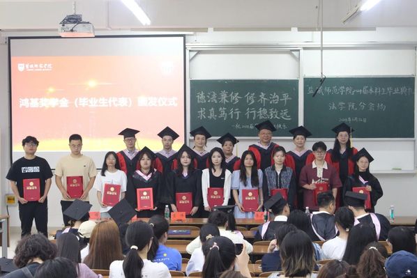 为表彰优秀,鼓励先进,树立典型,典礼现场还为毕业生代表颁发鸿基奖学金。他们中有人考取硕士研究生继续深造,有人到西部去、到基层去、到祖国最需要的地方去,有人投身于基层法律服务一线……本次奖学金颁发仪式,不仅是对他们过去努力的认可,更是对未来为梦想努力拼搏,成就最光辉的人生的期许。