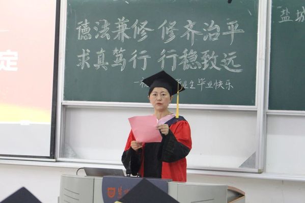 教师代表李叶青发言。她回顾了与同学们共同度过的点滴时光,祝福大家找到自己所寻求、所体会、所定义的幸福。她希望同学们坚守初心和梦想,仰望星空,脚踏实地,用汗水书写明日的传奇,更希望同学们知黑守白、恪守法律人的底线。她表示云顶国际yd333永远是同学们最温暖的家,欢迎大家常回家看看!
