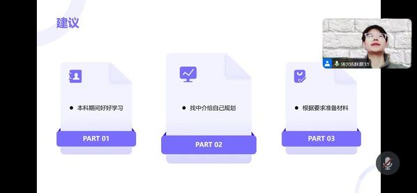 赵蔚结合自身学习经历与同学们分享。在职业规划方面,他说到明确目标和清晰的自我认知是成功关键,同学们可根据兴趣和职业目标选择未来职业方向。他还介绍了自己申请澳洲留学的流程、要求以及在澳洲的生活经历和不同的学习体验。在学习备考方面,他说到坚持不懈的品质和科学备考策略是通过法考的关键,建议同学们可以采用“记忆树枝”体系化等学习法能,加强记忆、构建知识体系、提高学习效率,同时他强调了逻辑思维和语言组织能力的重要性,建议同学们日常多练习。