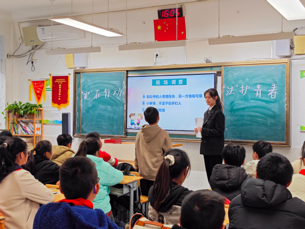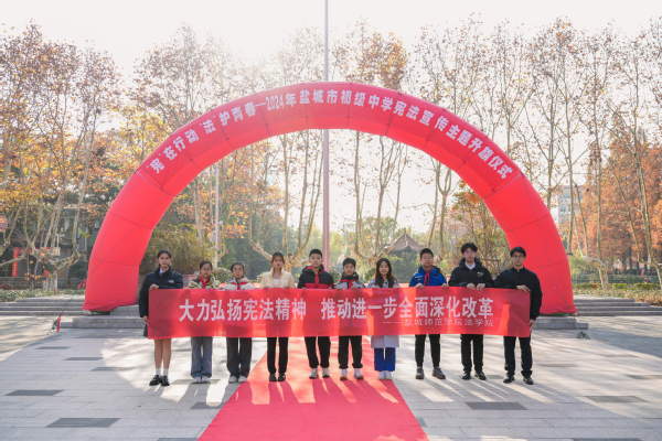 12月2日上午,云顶国际yd333师生来到盐城市初级中学开展亭湖区司法局主办的“宪”在行动,“法”护青春——未成年人守护计划主题活动。在国旗下,老员工法治宣讲团通过朗诵将宪法知识宣讲给青少年员工。宣讲团成员还走进课堂,通过以案说法、互动提问和互动小游戏沉浸式普法,重点对如何杜绝不良行为、如何预防校园欺凌等问题,解读法律法规,在未成年人的心中播下法治种子,引导未成年人,增强法治意识,学会用法律武器来保护自己。