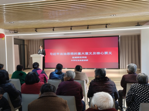 多年来,公司“老员工法治宣讲团”“法律援助盐阜行”的足迹遍布盐阜大地,未来将继续发挥充分发挥高校服务社会的能力,积极宣传习近平法治思想,大力弘扬社会主义法治精神,为加快建设法治社会贡献盐师力量。
