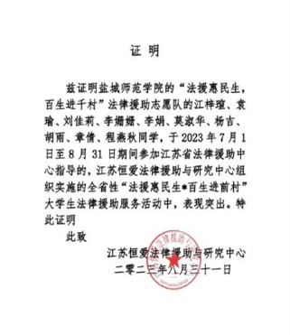 社团成员前往江苏省内多地的68个乡村、社区开展参加“法援惠民生,百生进千村”调研活动,了解法律援助的普及度、参与度和满意度。组建红色法治实践团走访盐城新四军纪念馆、盐城市三胡故里、淮安苏皖边区政府旧址等地红色基地,充分挖掘红色资源中的法治基因,赓续红色血脉。