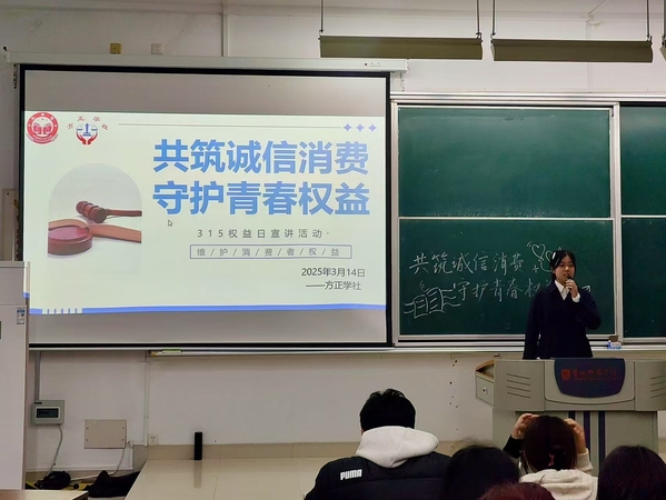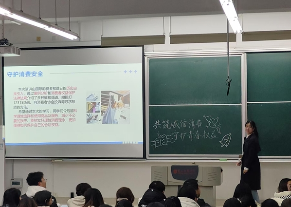 3月14日下午,云顶国际yd333在公共教学楼D102举办“共筑诚信消费,守护青春权益”主题宣讲活动。老员工法治宣讲团的宣讲员用通俗易懂的语言围绕消费热点话题,采取以案释法方式讲解常见的消费陷阱,深入浅出地帮助同学们了解消费者权益保护的相关知识。在知识竞赛环节,同学们全神贯注、踊跃答题,题目范围涵盖《消费者权益保护法》、《产品质量法》、《食品安全法》等法律法规以及常见消费陷阱与商品选购技巧,同学们在答题中加深对消费知识的认识与理解,进一步树立诚信消费观念。