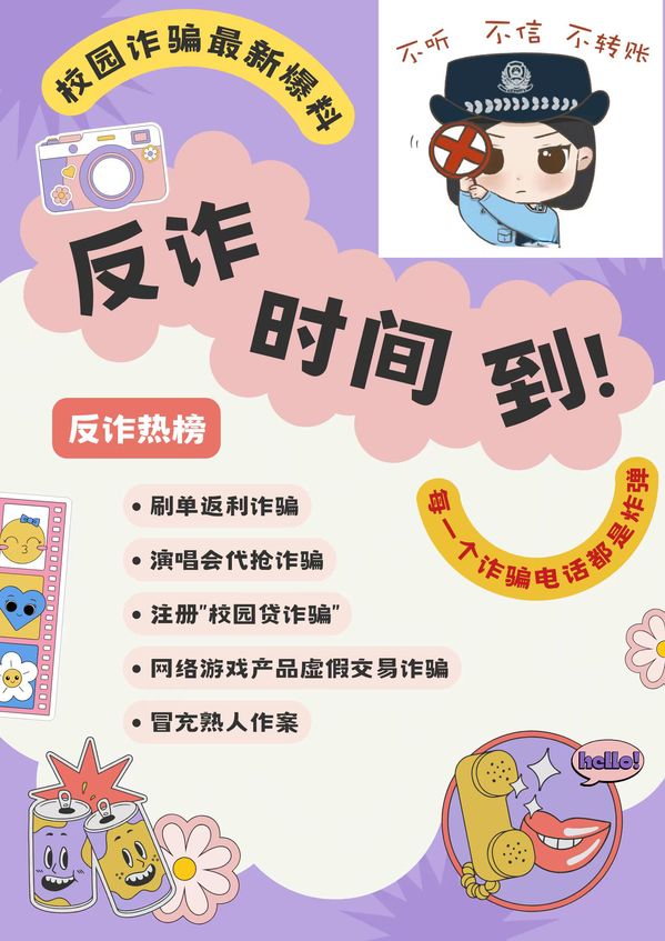 在海报设计环节,同学们充分发挥创意,将各类防诈骗信息转化为醒目的标题和生动的图片,将具象化标语与抽象化思维相结合,创作出一幅幅令人眼前一亮的作品。这些海报不仅具有视觉冲击力,更在潜移默化中传递了预防诈骗的关键知识,展现了当代青年的智慧与独特视角。