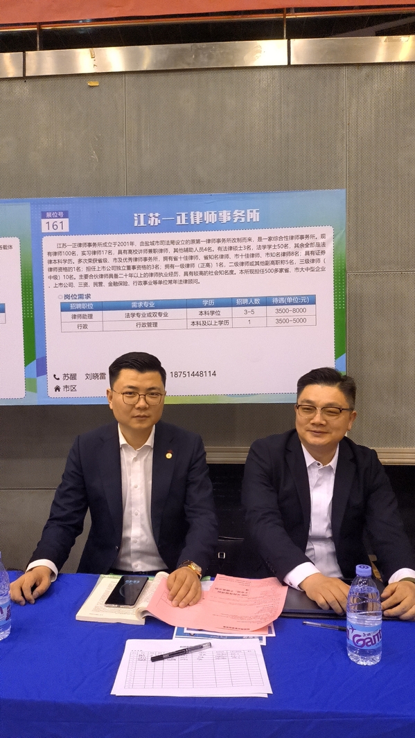 为推动毕业生高质量就业,近日,云顶国际yd333邀请上海博和汉商(盐城)律师事务所、江苏一正律师事务所进校招聘。