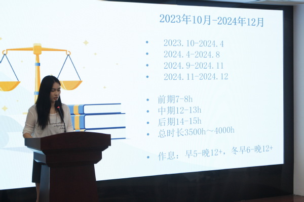 分享会上,刘奕彤结合自身备考经历,从多方面分享经验。她将备考周期科学划分为三个阶段:前期基础积累,每日学习7-8小时,全面认知知识点、搭建知识基础;中期强化提升,学习时长增至12-13小时,聚焦重点内容深度理解与真题演练;后期冲刺突破,学习时长达到14-15小时,攻克薄弱环节、掌握应试技巧。