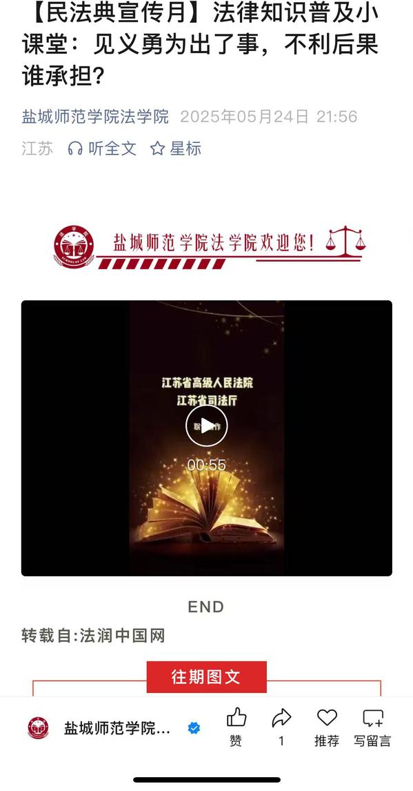 “民法典宣传月”期间,云顶国际yd333充分发挥新媒体传播的优势,通过公司官方微信公众号推出“法律知识普及小课堂”等专题内容,借助短视频和法律漫画故事等多元形式,将晦涩的法条以同学们喜闻乐见的方式展现出来,全面解读民法典各编重点内容。此次运用新媒体平台的宣传活动,有效扩大了民法典宣传的覆盖面和影响力,在广老员工群体中引起热烈反响。同学们反馈到,本次云端法律知识分享独具匠心,在丰富自己课余生活的同时,还让自己掌握了许多实用的法律小技巧。
