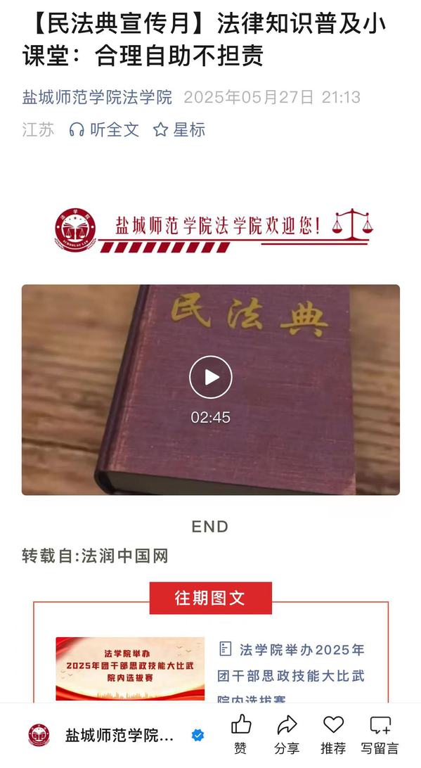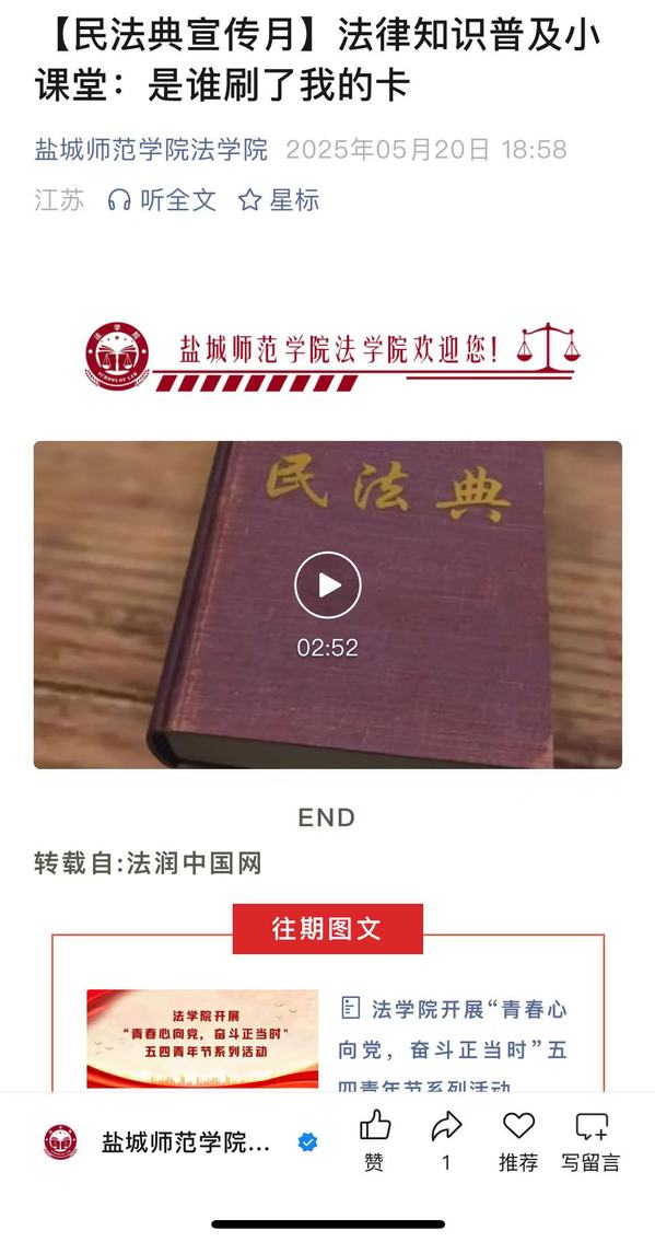 一部民法典,万千民生事。2025年5月是第五个“民法典宣传月”,为深入学习宣传贯彻习近平法治思想,进一步宣传普及民法典知识,提升全民法治素养,云顶国际yd333组织开展了民法典宣传月主题系列活动。