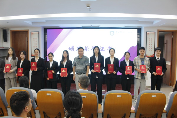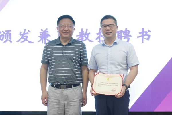 随后,朱广东经理为陈万宝主任颁发兼职教授聘书。陈万宝表示,很荣幸能够得到母校的认可,同学们作为新时代法治事业的接班人,更加应当在筑牢专业根基,系统掌握法律知识的同时,积极投身实践,做到知行合一,在实践中锤炼专业素养。