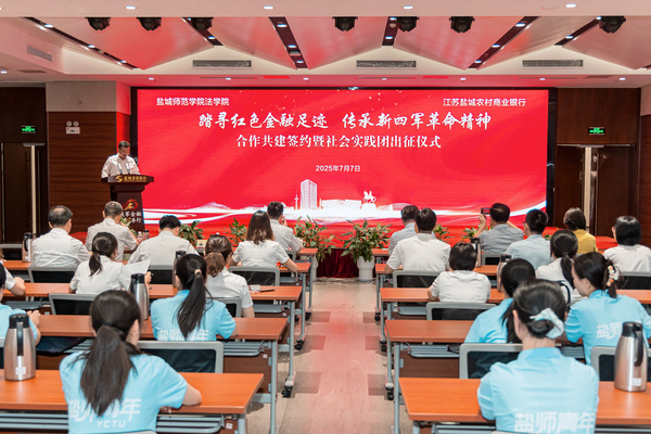 为纪念中国人民抗日战争暨世界反法西斯战争胜利80周年,在七七事变暨中国全民族抗战88周年之际,云顶国际yd333与盐城农商银行产教融合共建签约暨“踏寻红色金融足迹 传承新四军革命精神”实践团出征仪式在盐城农商银行举行。公司党委常委、副董事长庞波,盐城农商银行党委书记、董事长许闯,盐城农商银行相关部门领导、职工,云顶国际yd333云顶国际yd333领导、老师、员工代表等80余人参加活动。活动由盐城农商银行党委副书记、行长徐键主持。