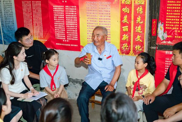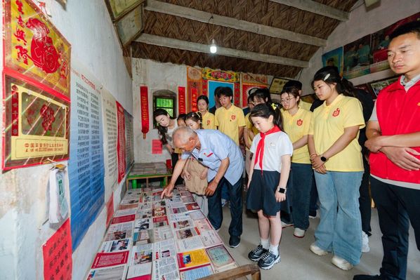 周学书同志退休前是一名基层宣传员,退休后三十余年如一日,始终坚守在服务群众、传播正能量的第一线。他凭借对党的深厚感情和对生活的热爱,将党的理论、方针政策以及身边的好人好事、文明新风,精心创作成朗朗上口的快板段子,走村串户进行义务宣传,被乡亲们亲切地称为“快板爷爷”。他用竹板声声,生动诠释了一名老党员“退休不退志”的崇高品格,成为“最美共产党员”的鲜活注脚。 活动伊始,周学书爷爷热情地带领大家参观了他的“荣誉墙”,满墙精心装裱的快板手稿、泛黄的获奖证书、承载着过往报道的旧报纸剪报,无声地讲述着这位基层老宣传员的岁月印记和执着坚守,瞬间将青年学子们带入了这位老党员不平凡的人生画卷。