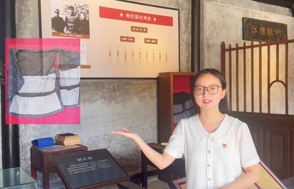 这份“不怕”背后是生死守护。金库中的金条银元是抗币准备金,更是部队购药买械的“救命钱”,日军“扫荡”时必疯狂搜剿,面对极其危险的情况,陈克秋在灰色粗布做成的背心上缝出许多小暗袋,把金条缝进每个口袋里,制成一件属于自己的“黄金甲”带上战场。每次提到这件母亲自制的“黄金甲”,董峻新女士都眼含泪水,在泰山庙新四军重建军部旧址,实践团成员曾见过那件灰色粗布马甲的复制品。