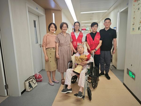 实践团师生怀着崇敬之情到江苏省某医院探望陈克秋老人,当得知实践团来自新四军重建军部所在地盐城,她又回想起那段激情燃烧的革命岁月,尽管年事已高,但她的眼神依然坚定而炽热,如同她对祖国的心赤诚和热爱。实践团成员为陈老送上鲜花祝福,她紧紧握着青年员工的手,细声嘱咐,希望青年一代铭记历史,接续奋斗!